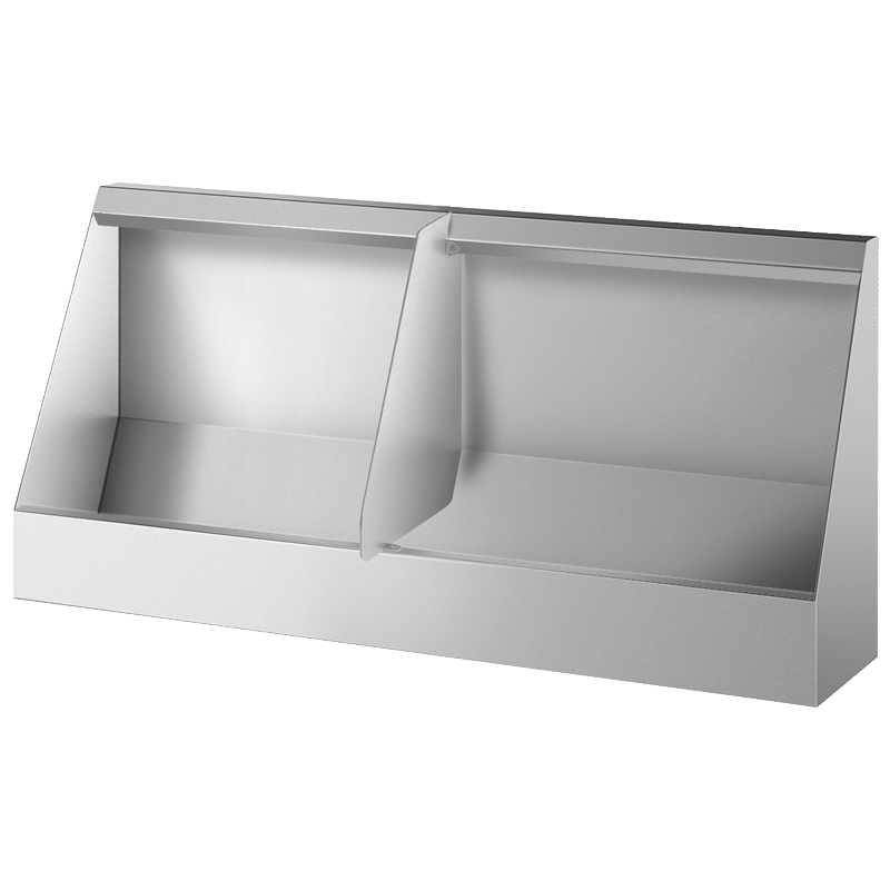 Possibilité d'ajouter un ou plusieurs séparateurs en Inox 304 bactériostatique (réf. 100900). À fixer directement sur l'urinoir à l'emplacement souhaité.