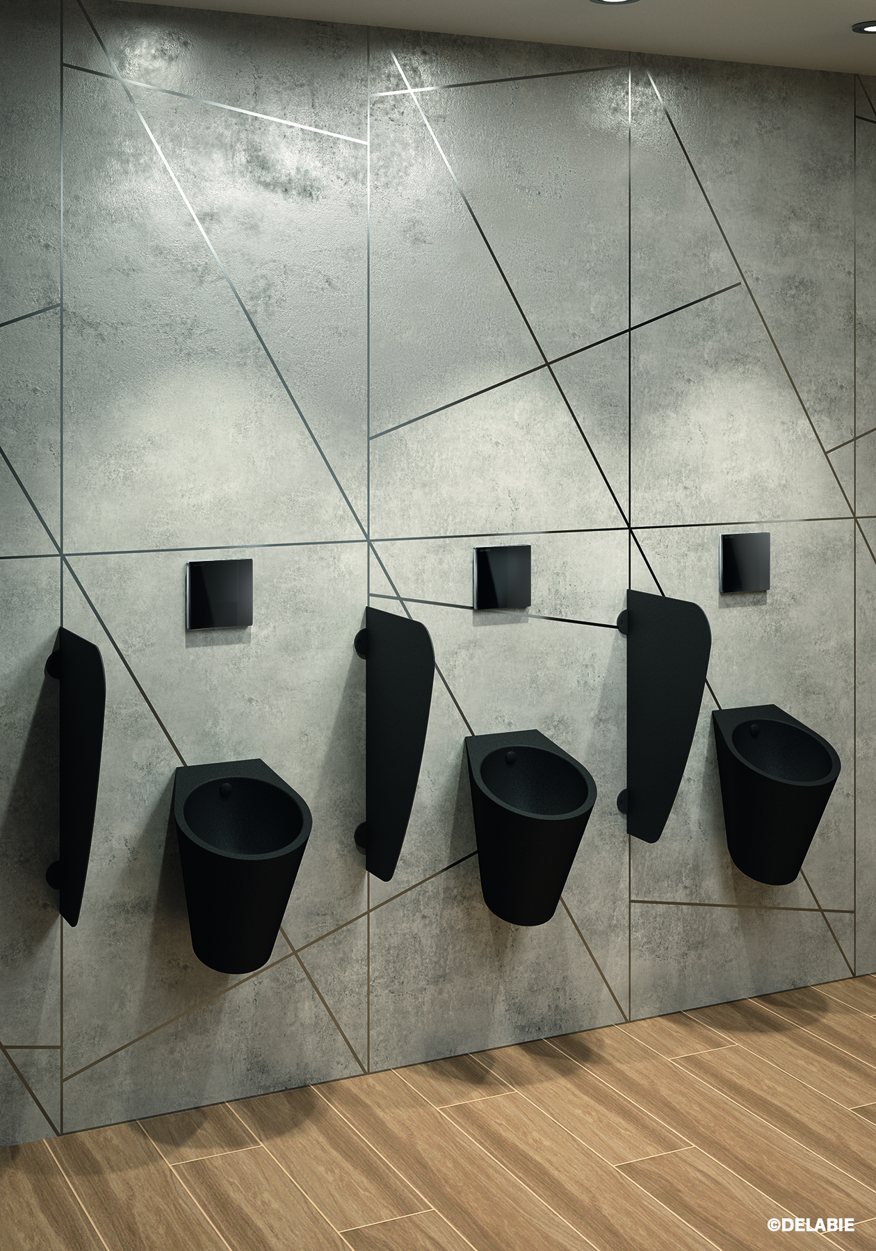 Le produit Urinoir design noir FINO de DELABIE est prescrit dans des projets de type : Hôtellerie Restauration .