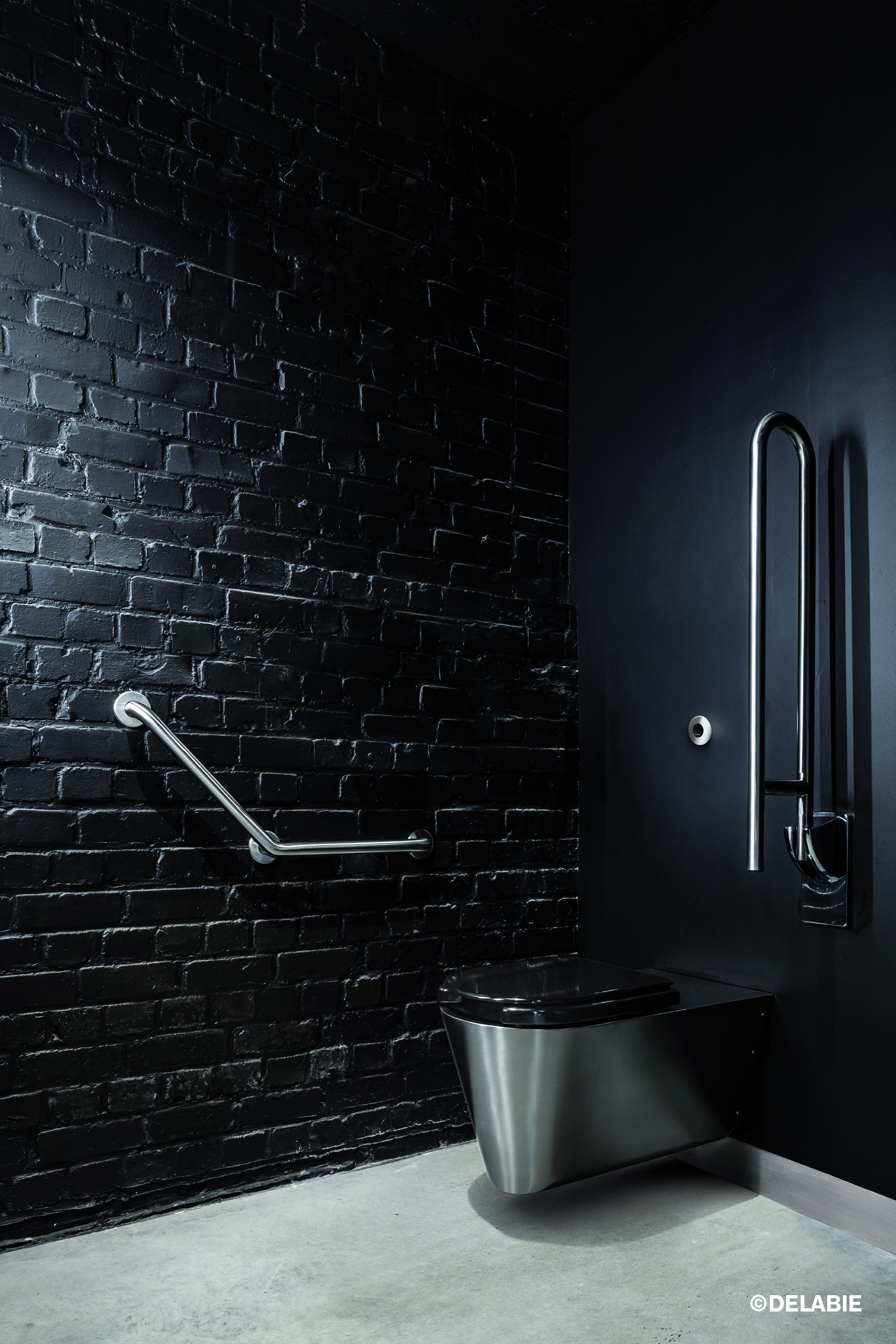 Le produit Barre de maintien coudée 135° Inox brillant, 400 x 400 mm du fabricant DELABIE classé dans la catégorie Menuiseries extérieures > Quincaillerie - accessoires de menuiseries > Elément d'accès spécial PMR est référencé dans la Matériauthèque digitale Materiaux.archi.