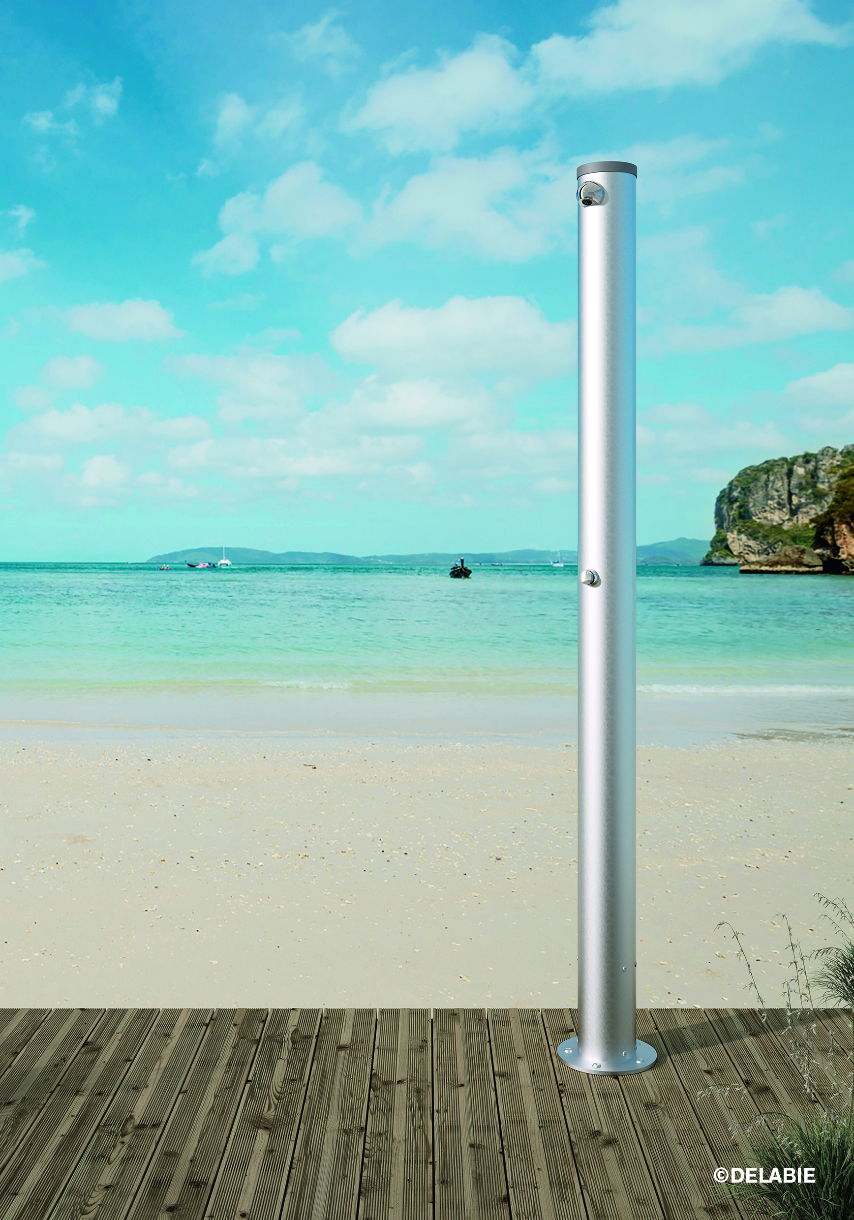 Le produit Colonne de douche temporisée PLEIN AIR du fabricant DELABIE classé dans la catégorie Aménagement exterieur > Piscines - spas et équipements > Douches de jardin est référencé dans la Matériauthèque digitale Materiaux.archi.
