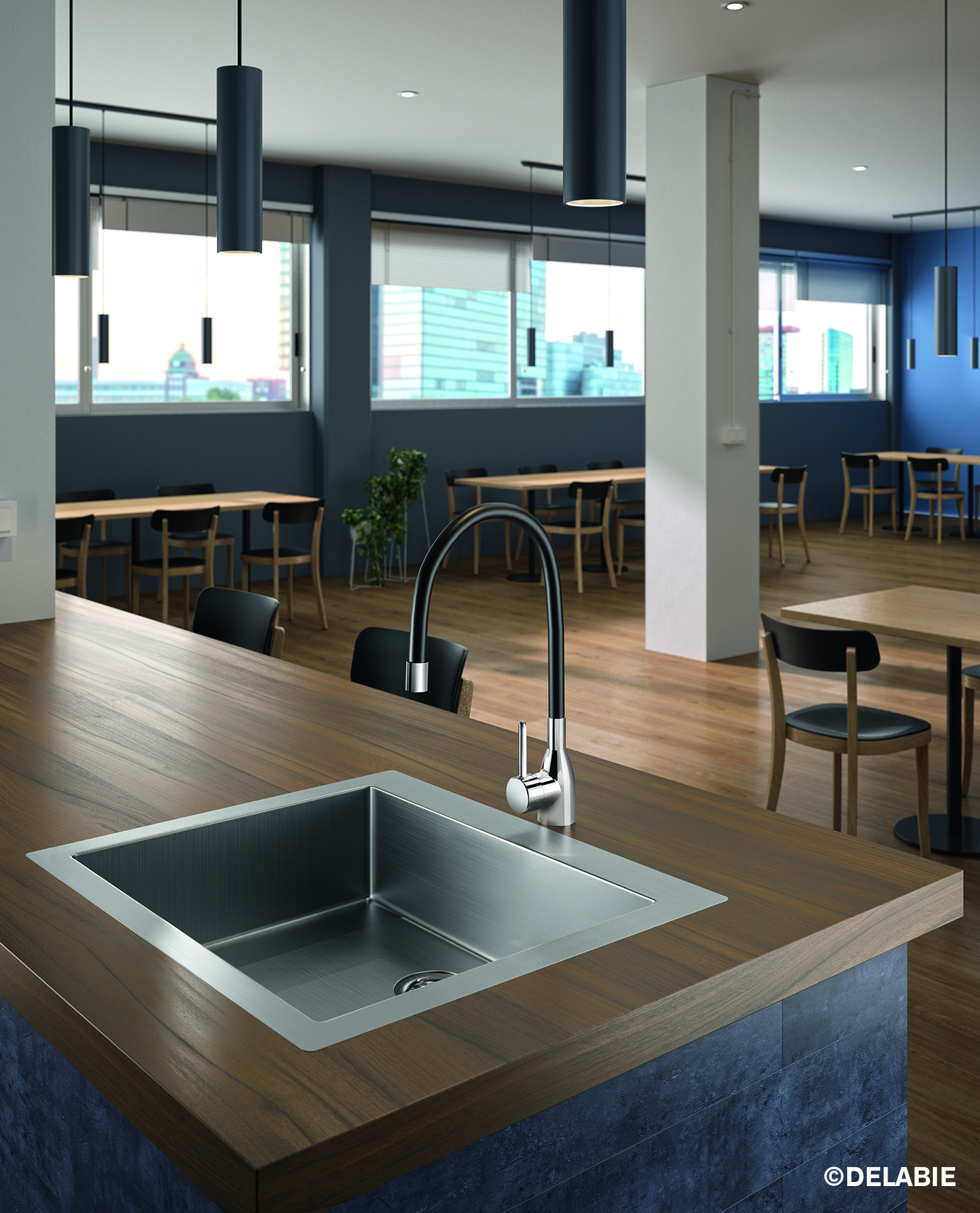Le produit Mitigeur monotrou sur gorge du fabricant DELABIE classé dans la catégorie Décoration et mobilier > Espace cuisine > Robinets de cuisine est référencé dans la Matériauthèque digitale Materiaux.archi.
