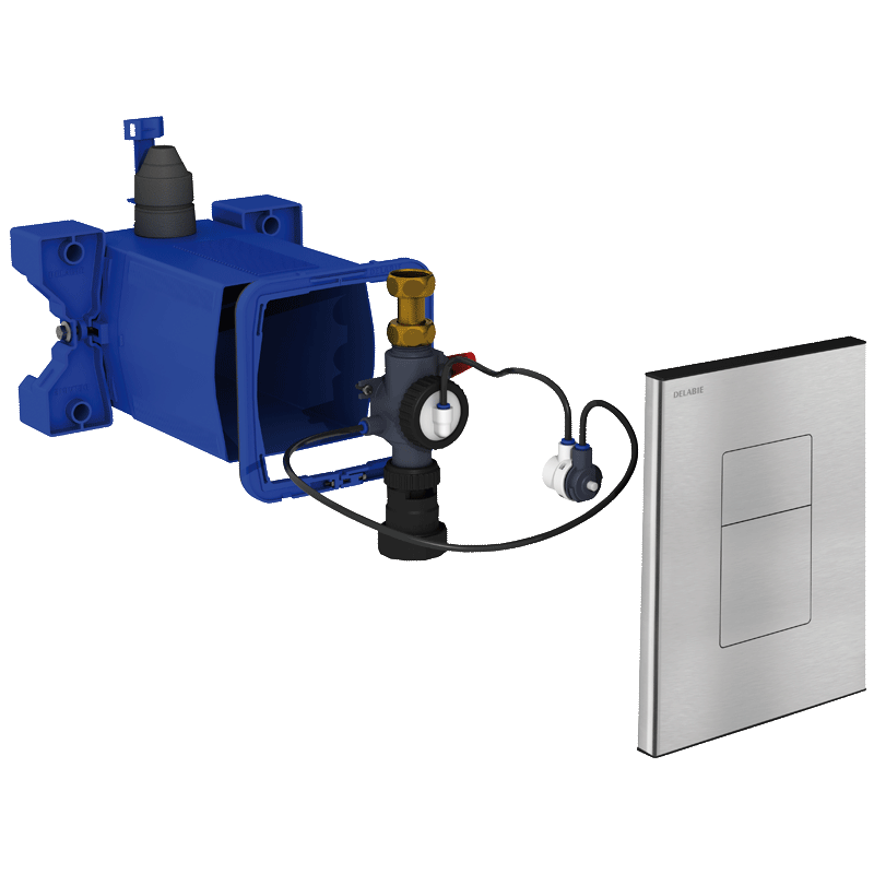 Le produit Plaque de commande TEMPOFLUX 3 pour WC du fabicant DELABIE a une largeur de 162 mm, Le produit est garanti "30 ans"