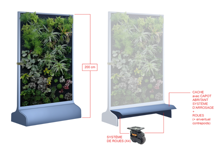 Le support de végétation étant auto portant, il ne nécessite aucune accroche importante, et ne prend pas d’emprise importante au sol.
