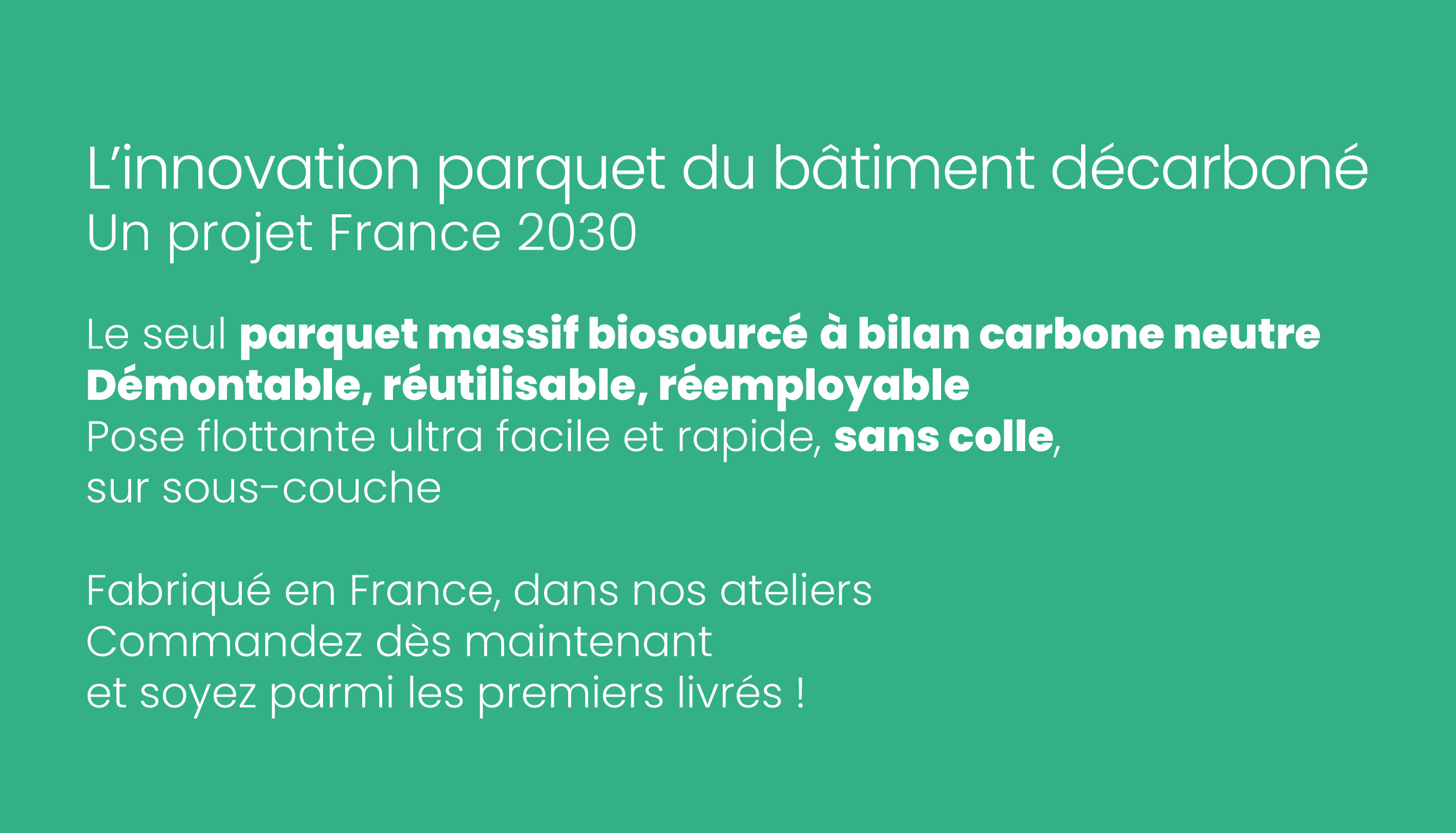 Naofloor est l’unique parquet massif démontable, réemployable et réutilisable, éco-conçu et fabriqué en France avec du chêne français PEFC 100%, 100% Bois de France et labellisé Origine France Garantie.