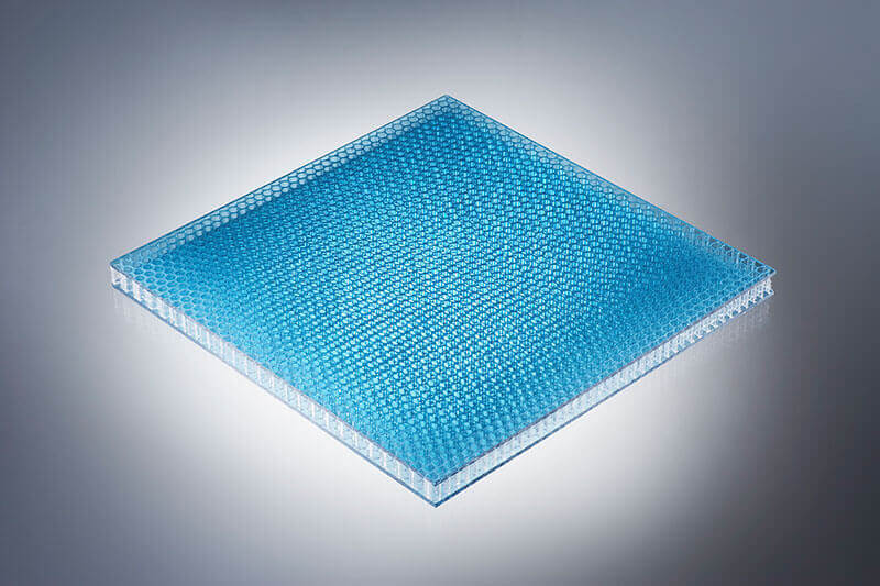 By means of a special bonding technology, it is possible to combine honeycomb-like cores with transparent thermoplastic facing sheets to form panels with unique optics.