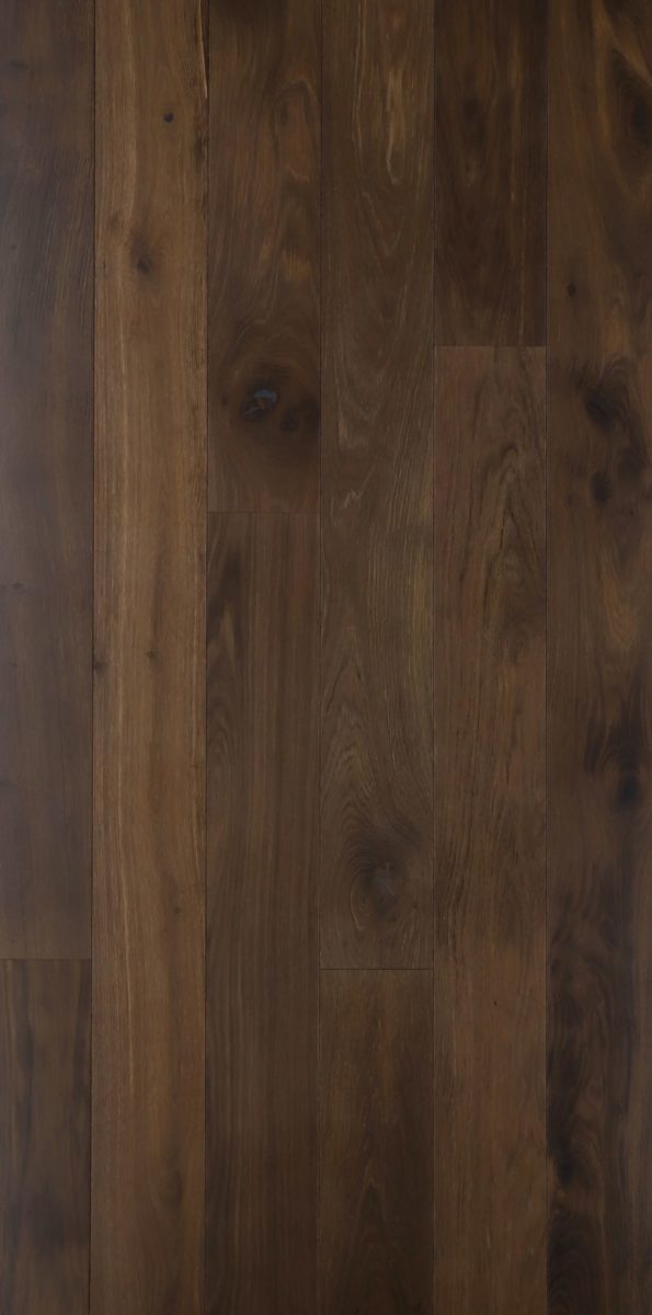 Parquet Moka RF+ (finition renforcé) de la Gamme Grand Trafic (Vernis ROC). Un parquet Loft Pro brun fumé, Vernis Mat disponible en pose à l’Anglaise, Bâton Rompu et Point de Hongrie.