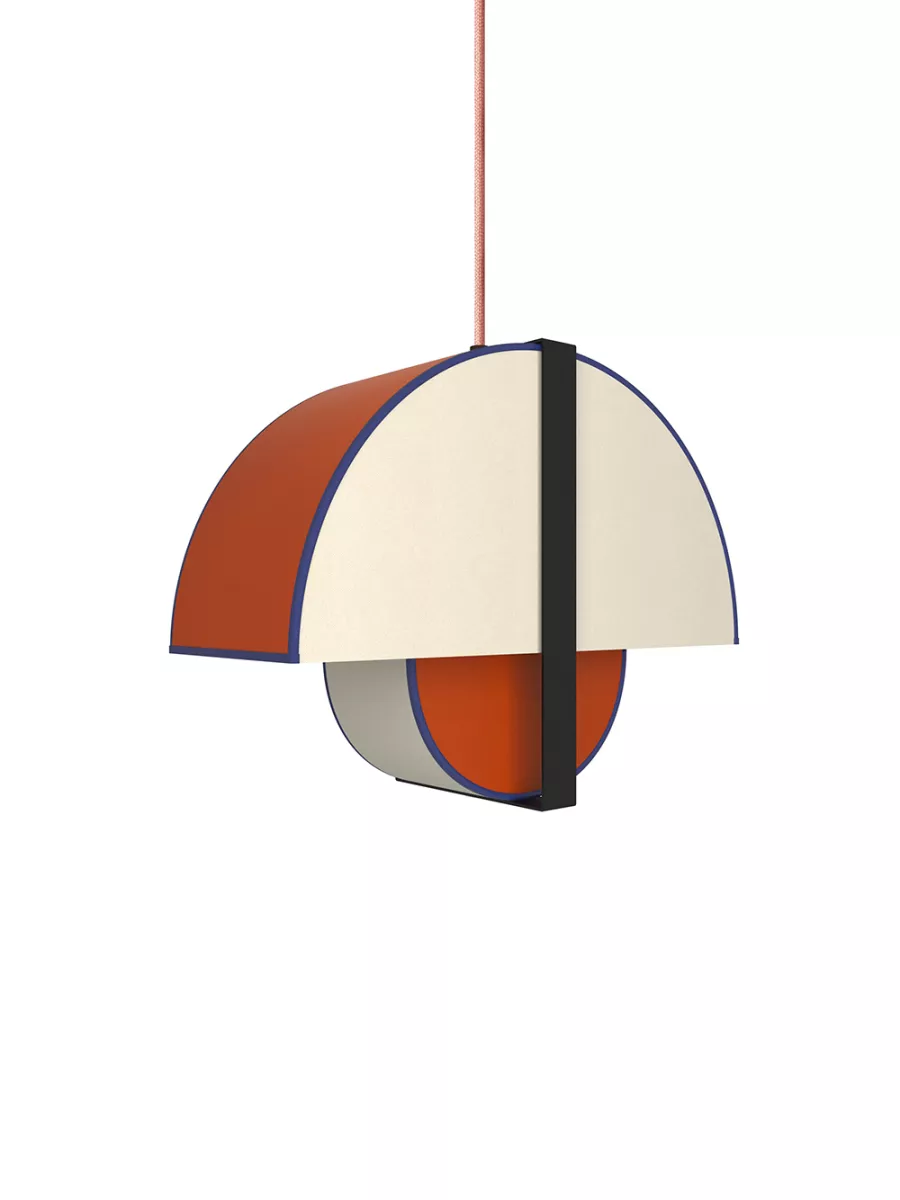 Le produit Arto Grand hanging lamp in nude beige fabric and modern terracotta de DESIGNHEURE est prescrit dans des projets de type : Habitat individuel .