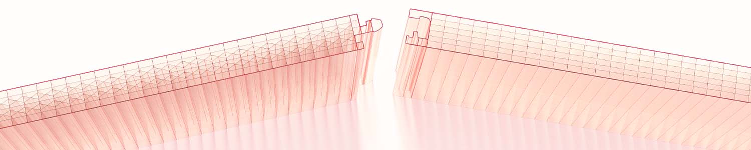 Gamme de panneaux modulaires arcPlus ® à emboîtement mâle femelle en polycarbonate qui permettent de réaliser de larges panneaux plats pour des applications verticales, telles que des tampons, des fenêtres ou des cloisons. Les produits adaptés à l'exposition à l'extérieur sont équipés d’une protection UV standard à un seul côté et sont disponibles avec une épaisseur variable de 20 à 60 mm ; évidemment avec l'augmentation de l'épaisseur, la géométrie de la structure interne et le nombre de parois internes vont changer, améliorant ainsi les performances d'isolation thermique. Le panneau arcWall® atteint une valeur de transmission de 0,74 W/m2K. Grâce à la rigidité liée à l'épaisseur élevée de ce produit, sans renoncer à la légèreté, il est possible de réaliser des tampons « avec des hauteurs infinies » simplement en choisissant les profils spéciaux que j'ai conçus pour donner encore plus de liberté de conception. Caractérisés par leur rapidité et leur facilité de montage, les systèmes à jonction sont également utilisés comme support pour la communication et les aménagements. Les systèmes adaptés à la réalisation de faux plafonds sont disponibles avec une épaisseur de 10-20 mm et ne se caractérisent pas par une protection UV. Tous les produits sont équipés d'une série d'accessoires pour permettre un système de fixation approprié.