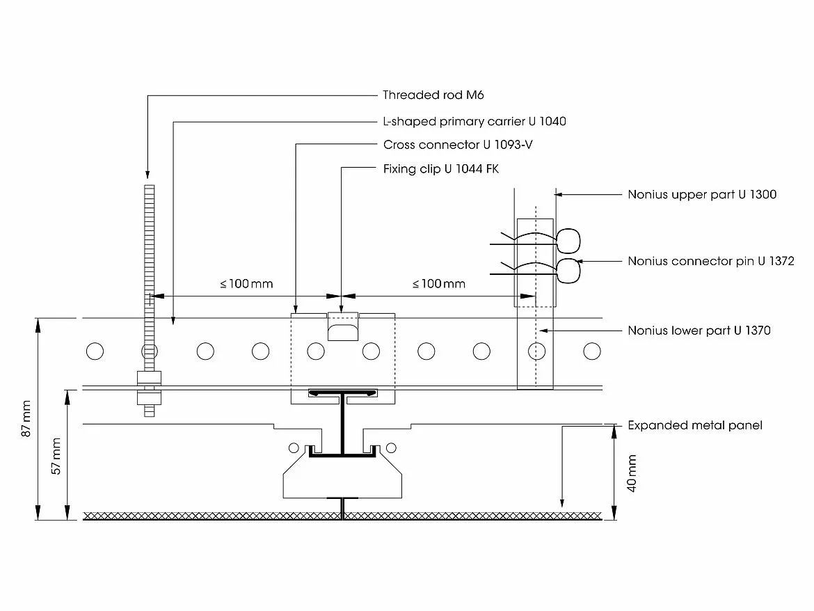 Le système Rhombos S10H est plafond bac métal étiré démontable à ossature non-visible sur porteur H [Double-Hook].