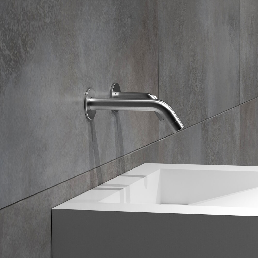 Robinet électronique automatique à détection infrarouge. Installation murale avec plaque de renfort inox TR.