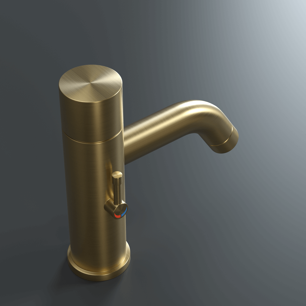 Mitigeur électronique sur plage, avec réglage de température latérale. Corps en laiton massif, détection de mouvement infrarouge. Option télécommande qui permet de multiples programmations telles que le temps d’écoulement, le rinçage périodique « anti-prolifération bactérienne», la distance de détection, le verrouillage temporaire, etc. Débit préréglé à 1.89l/min.