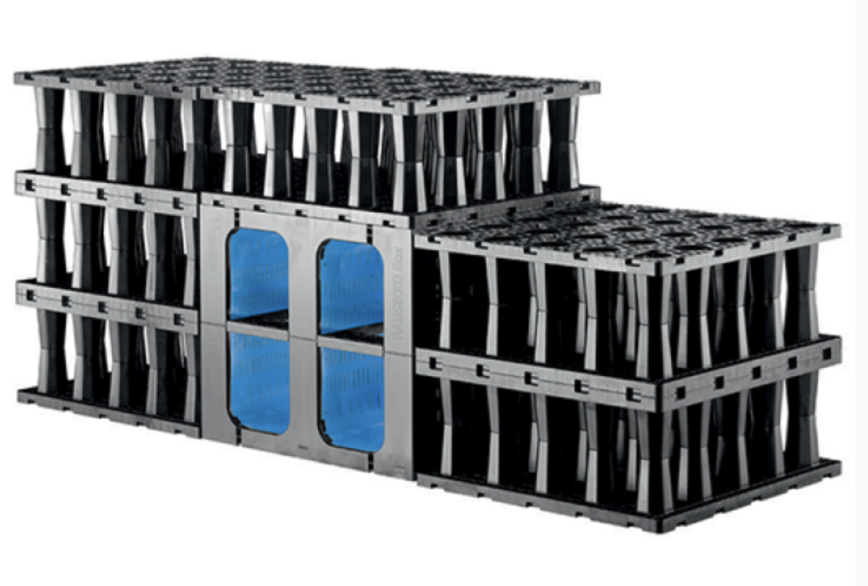 Le système SAUL Rausikko Box est un système en blocs modulaires permettant de collecter et stocker les eaux pluviales au plus près de leur point de chute en limitant au maximum les contraintes de surface foncière.