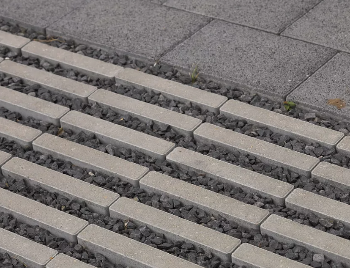 Dalles ou pavés à joints très larges. Ils facilitent la pénétration de l'eau de pluie dans le sol.