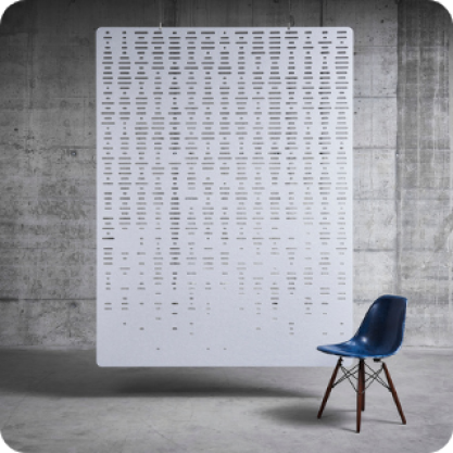 Le diviseur de pièce acoustique EchoCurtain® est disponible en deux épaisseurs de matériau de 12 mm et 24 mm et offre une solution flexible et transparente pour l’amélioration acoustique. Il est suspendu au plafond par un câble métallique et peut être combiné avec un système de rail.