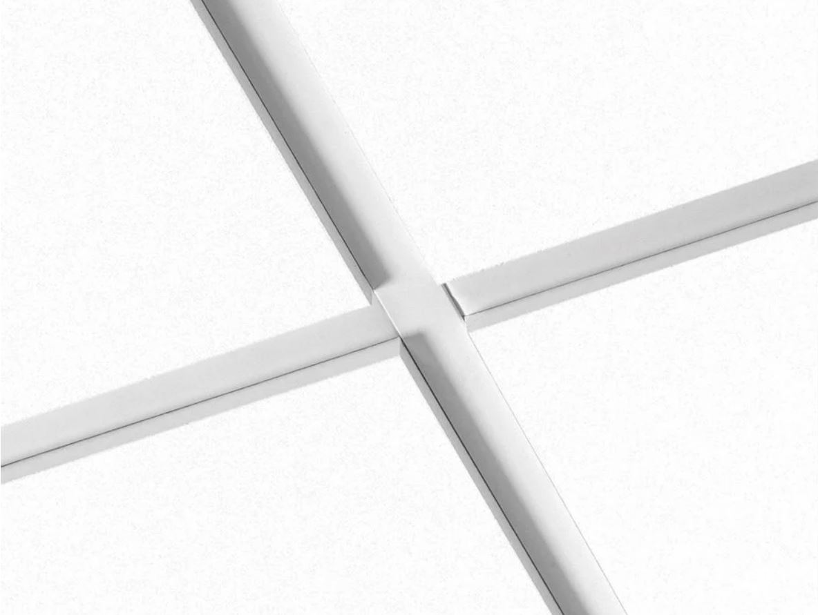 Ecophon Focus™ E se caractérise par un bord feuilluré qui forme un joint creux lorsqu’il est posé sur l’ossature, créant un effet d’ombre accentuant chaque dalle, tout en cachant partiellement l’ossature. Pour des applications privilégiant l’aspect décoratif des plafonds suspendus, et offrant un démontage individuel facile des dalles.