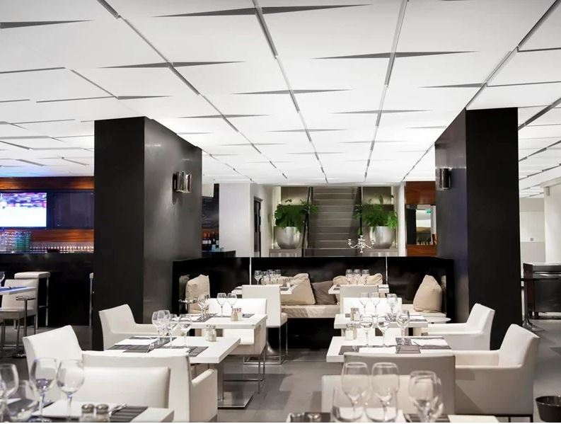 Ecophon Focus™ Ez se pose sur une ossature apparente semi-encastrée avec un design de bord en diagonale, offrant de nouvelles possibilités. Pour les applications exigeant une absorption acoustique et une intelligibilité de la parole élevées.