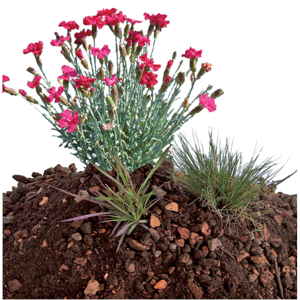 Substrat minéral enrichi, à base d'agrégats minéraux (pouzzolanes, fines de terres cuites, argiles concassés), enrichi en matières organiques et en fines pour une rétention d'eau accrue. Spécialement adapté pour les systèmes de végétalisation extensive et semi-intensive à base de petites plantes. La végétalisation est ensuite réalisée par plantation de godets, semis de graines ou pose de tapis précultivés. Une végétalisation semi-intensive doit impérativement être arrosée en période sèche. SAXALIS 1.1 est vendu en big-bag de 0.5m3.
