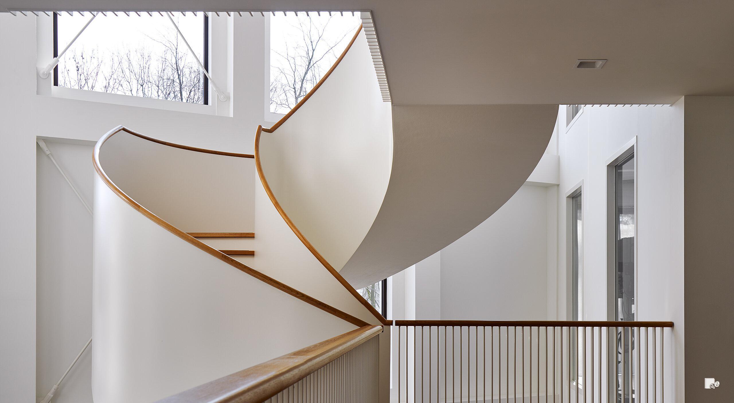 Les soffites en plâtre traditionnels faits à la main et les soffites fabriqués avec des planches standard ne sont pas toujours parfaitement lisses ou bordés avec précision, et ils sont sujets au mouvement et aux fissures ainsi qu’aux rayures. EeStairs a développé le système EeSoffit™ pour fournir des soffites absolument lisses et sans raccord pour les escaliers de caractère – même ceux avec des géométries spectaculaires et des rayons étroits.