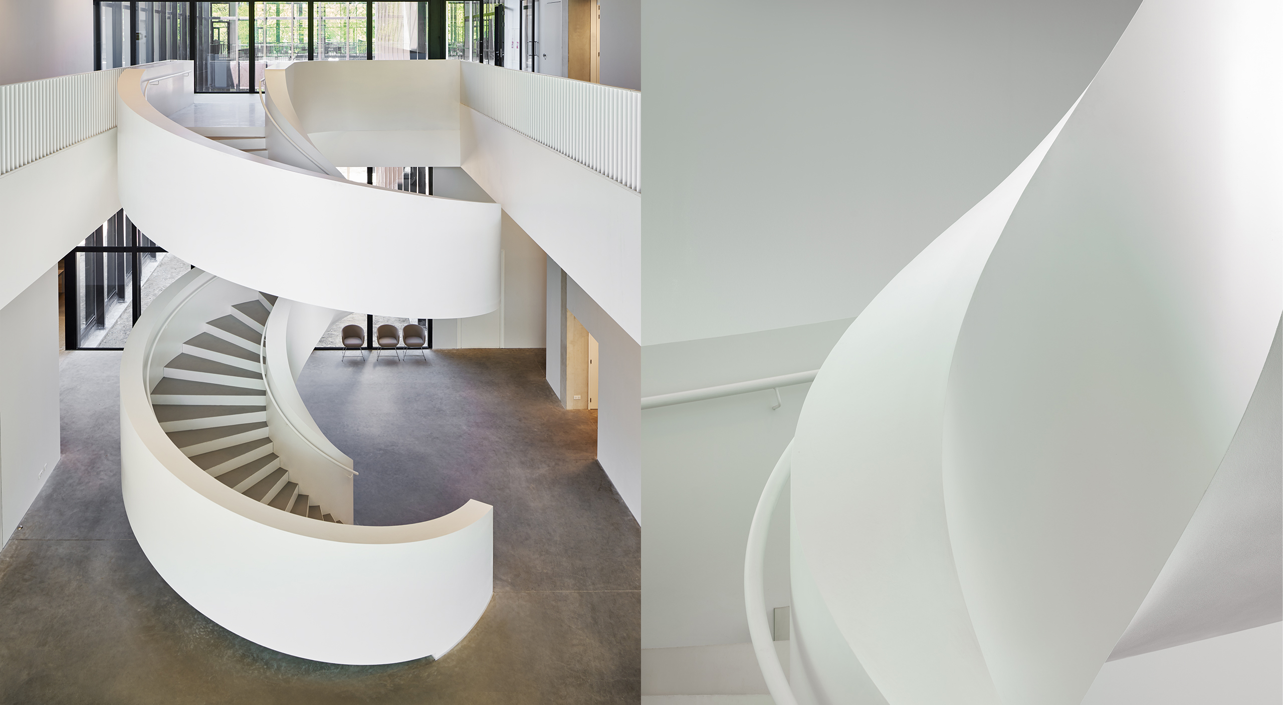 EeSoffit™ garantit des sous faces solides et ultra-lisses et des bords parfaits même sur des escaliers à géométrie complexe, tels que des escaliers hélicoïdaux ou elliptiques – ce qui est très difficile et prend du temps à réaliser avec des soffites en plâtre.