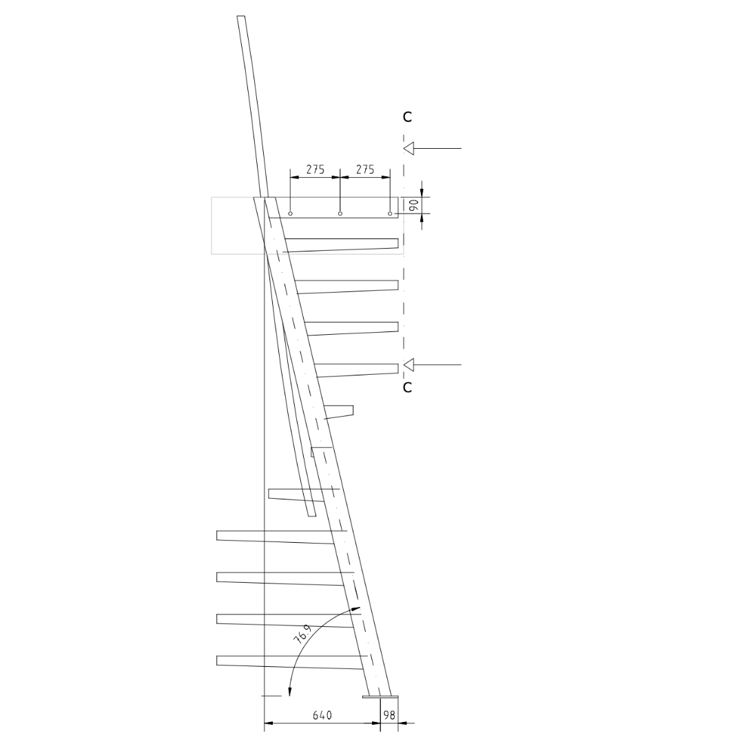 Ils sont fabriqués en acier avec précision et la conception innovante présente un poteau central très légèrement incliné intégrant une main courante. L’inclinaison permet aux marches d’être plus larges que dans un escalier en colimaçon strictement vertical, mais sans augmenter la surface au sol.