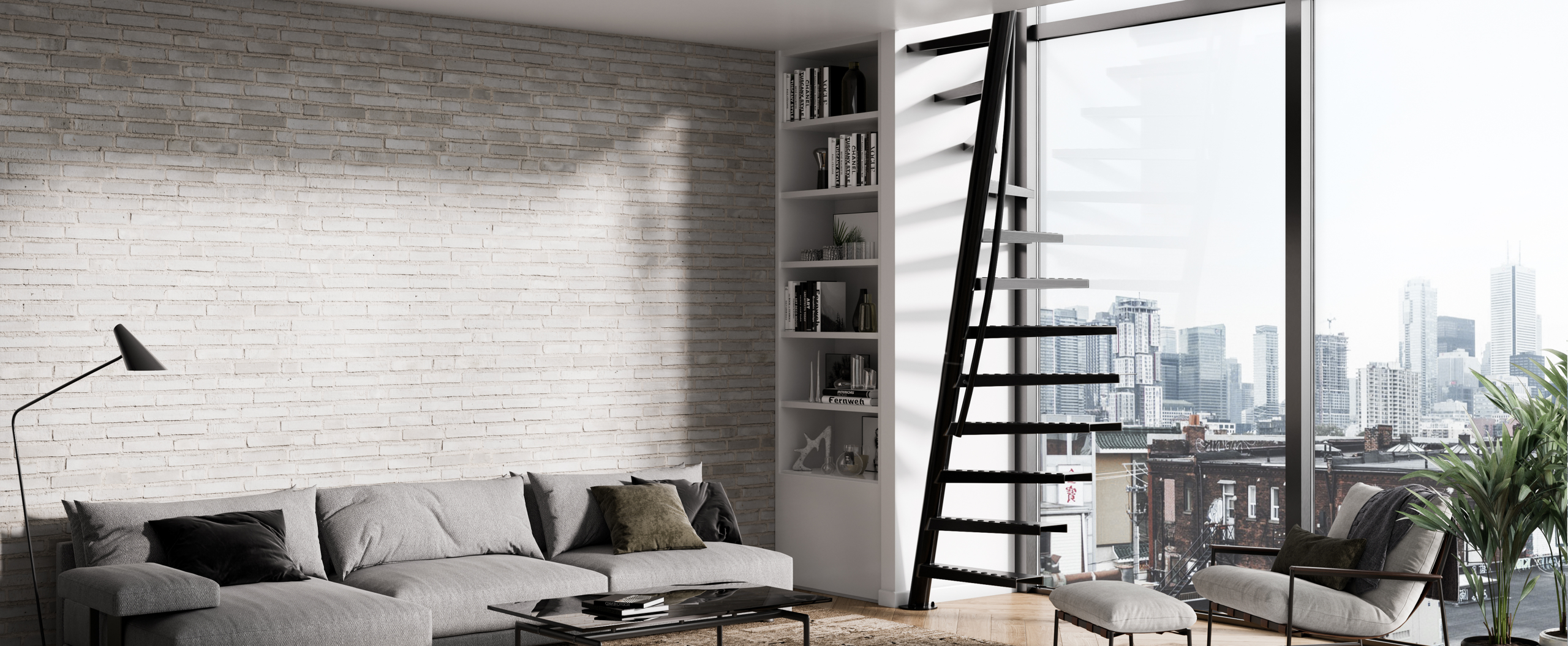 Les escaliers 1m2™ sont extrêmement économes en espace et ont été créés par EeStairs pour donner un accès facile à des espaces auparavant inutilisables dans les maisons ou d’autres types de bâtiments – ce qui améliore leurs valeurs humaines et immobilières.
