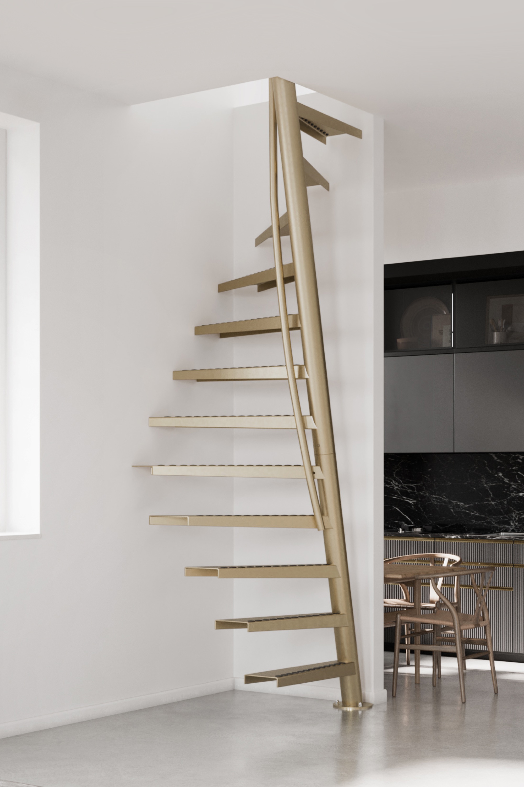 Le produit Escalier Gain de Place : 1m2™ by EeStairs de EeStairs est composé de : Acier .