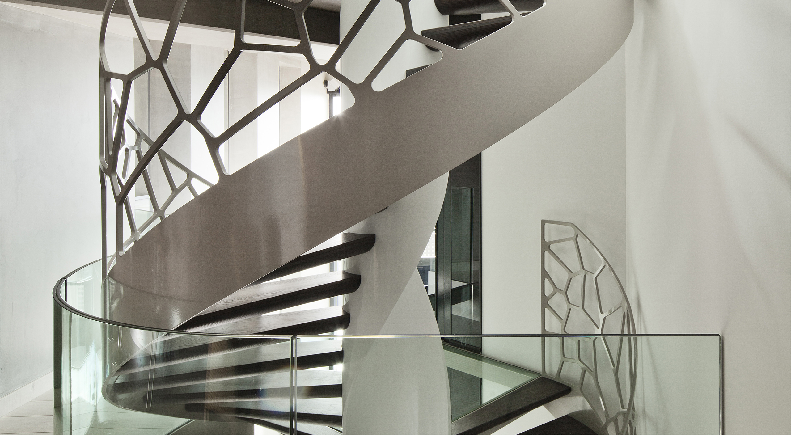 Parce que les garde-corps Cells™ sont en acier, les concepteurs peuvent spécifier des rayons plus serrés sur les limons sans compromettre la résistance de la structure de l’escalier dans son ensemble.