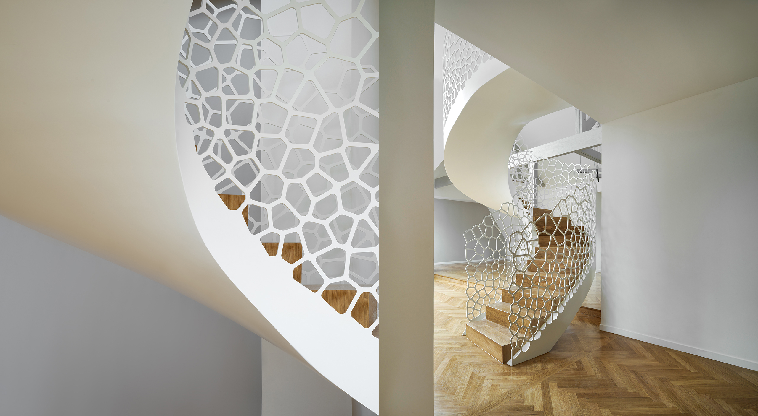 Le produit Garde-corps découpés au laser : Cells™ du fabricant EeStairs classé dans la catégorie Menuiserie intérieure > Escaliers bois - garde-corps - mains-courantes > Garde-corps et mains courantes est référencé dans la Matériauthèque digitale Materiaux.archi.