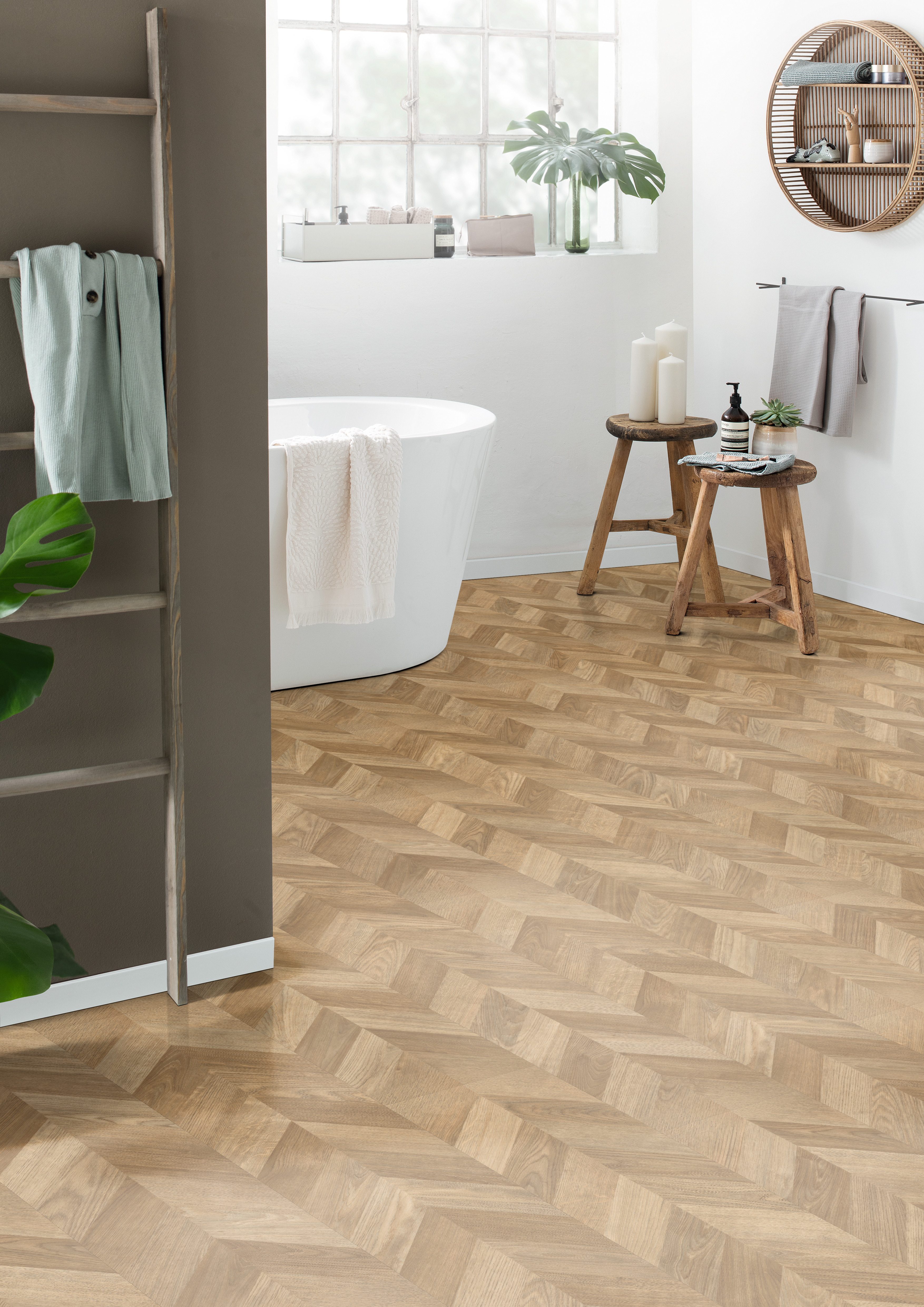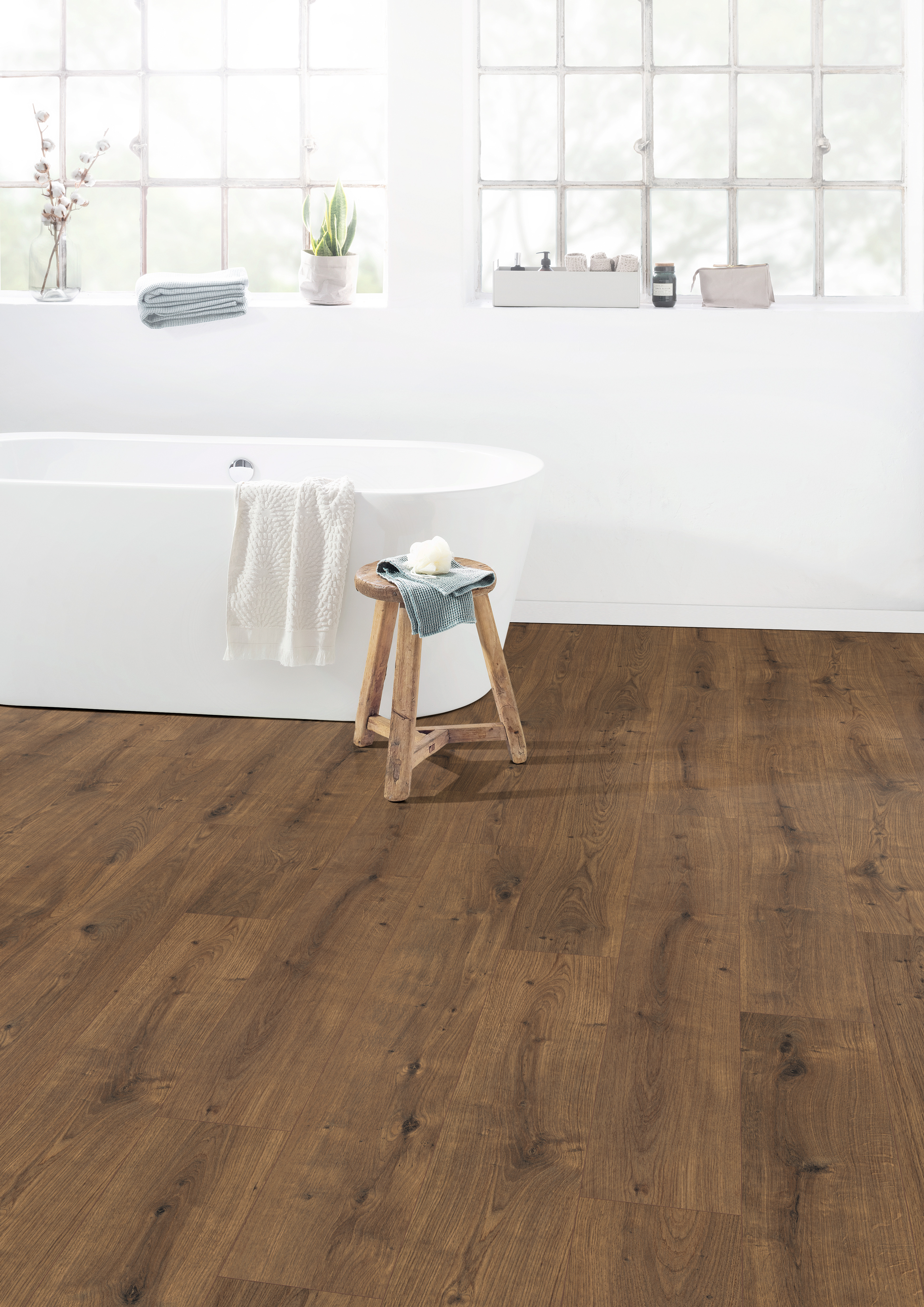 Que diriez-vous d'un revêtement de sol en bois dans votre salle de bains plutôt qu'un carrelage froid ? Avec EGGER Aqua+, nous avons développé une technologie spéciale qui rend les stratifiés résistants à l'eau jusqu'à 72 heures grâce au panneau central Aqua+, doté d'une protection anti-gonflement. Notre produit offre également une solution sûre pour les grandes surfaces commerciales grâce à un encollage sur toute la surface.