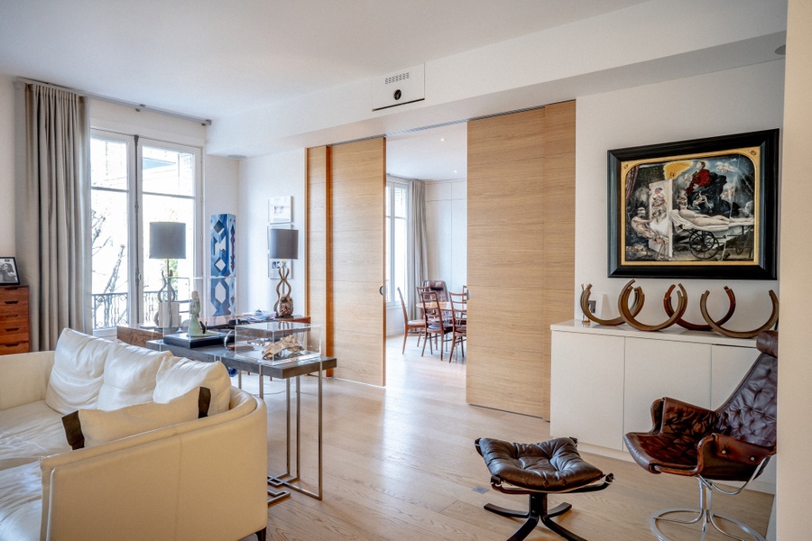 Design épuré : le système est invisible car l’ensemble est intégré dans la porte et dans la cloison.