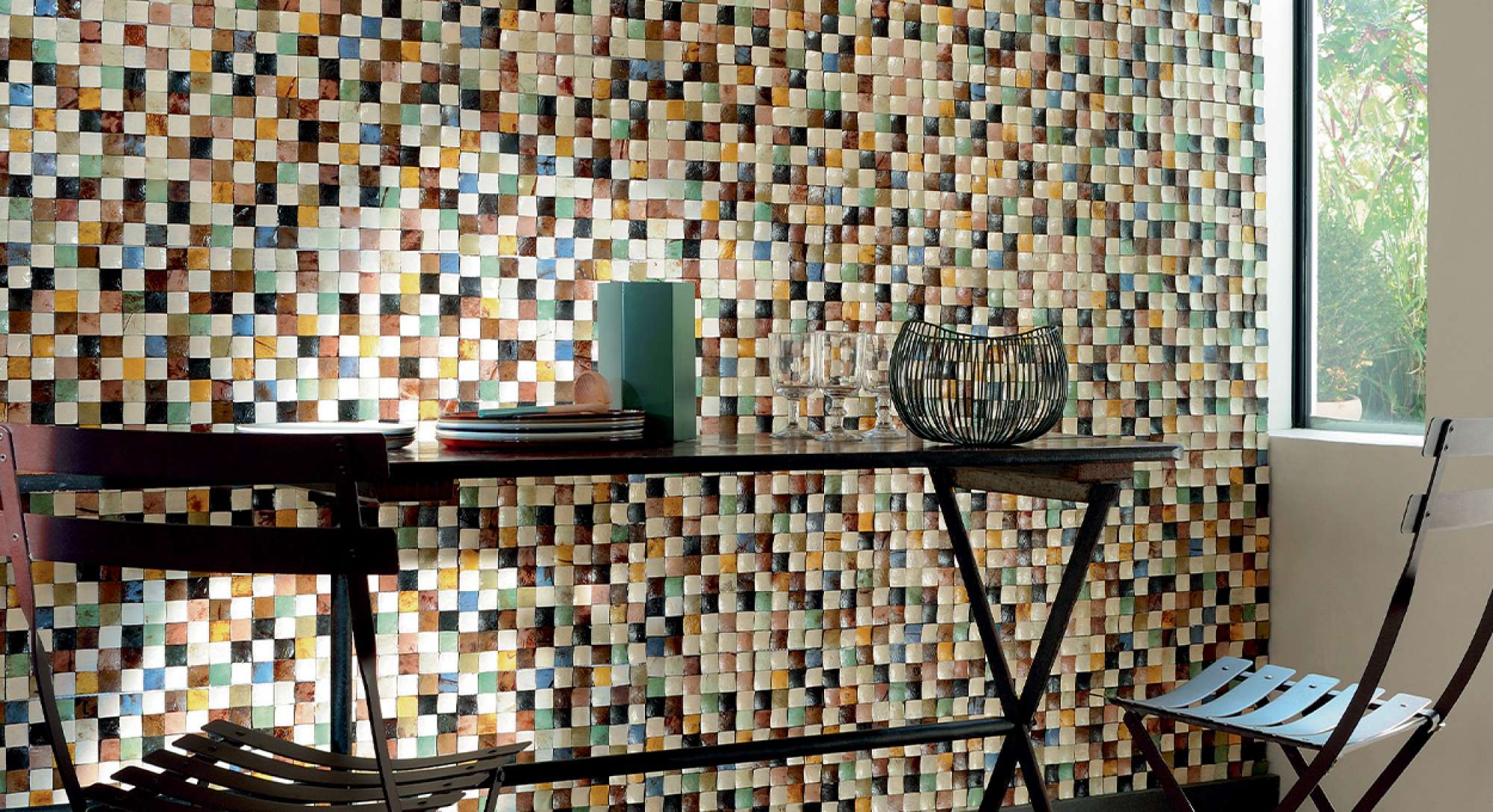 Le produit Coco shells du fabricant ELITIS classé dans la catégorie Revêtement mural > Carrelages et pierres pour murs > Carrelages muraux intérieurs (terre cuite, faïence,...) est référencé dans la Matériauthèque digitale Materiaux.archi.
