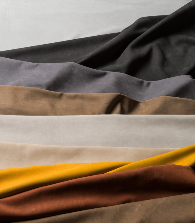 Cuir fleur de bovin scandinave. Tous les cuirs Elmo sont teints dans la masse et testés dans le laboratoire Elmo.