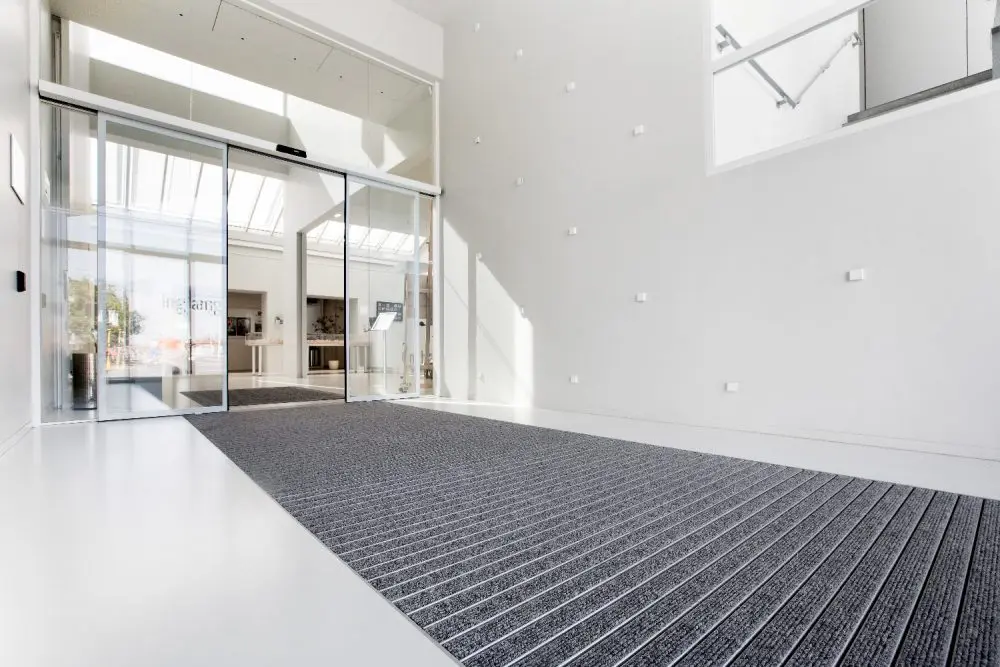 Fourniture et pose d’un tapis d’entrée enroulable, fabriqué sur mesure et d'un cadre à sceller de hauteur 15,5mm.