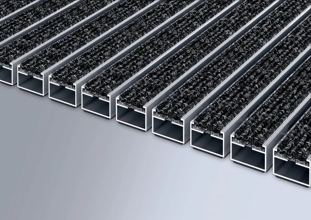 Fourniture et pose d’un tapis d’entrée enroulable, fabriqué sur mesure et d'un cadre à sceller de hauteur 15,5mm.