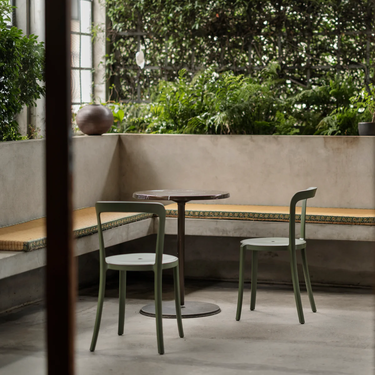 La collection On & On innove avec une façon de penser circulaire, combinant longévité du design, durabilité et utilisation de matériaux recyclés qui peuvent être recyclés à nouveau – encore et encore. Fabriqué et refabriqué aux États-Unis à partir de PET recyclé, disponible en six couleurs attrayantes et intemporelles, toutes adaptées à une utilisation en extérieur. Des sièges rembourrés et des sièges en contreplaqué en frêne et en chêne sont également proposés.