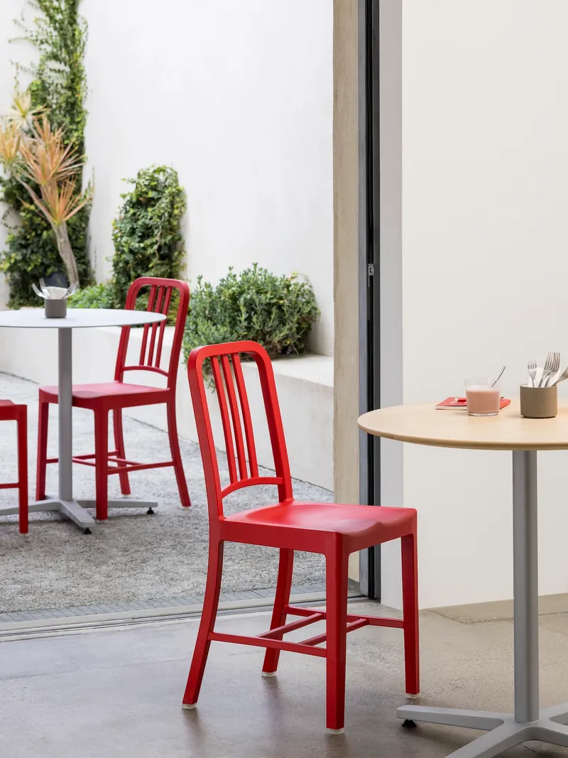 La chaise 111 Navy® est la toute première chaise fabriquée à partir de bouteilles en plastique recyclées. Chaque chaise est fabriquée à partir d’environ 170 bouteilles en plastique. Fabriqué aux États-Unis et conçu pour résister à une utilisation intensive. Toutes les couleurs conviennent pour une utilisation en extérieur.