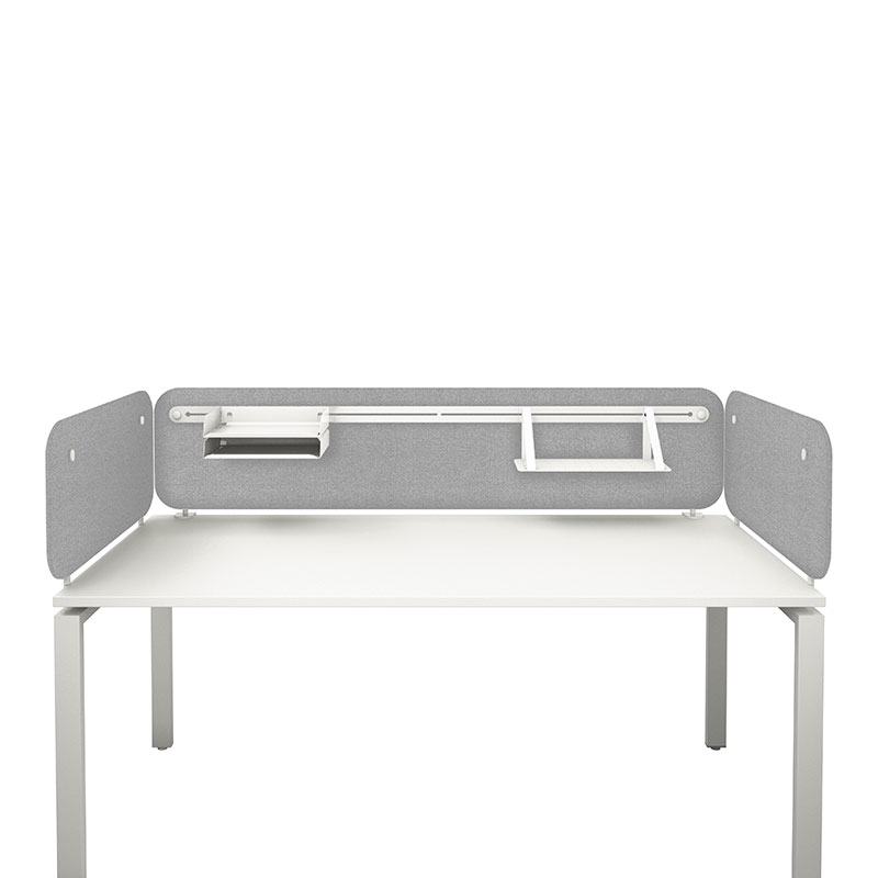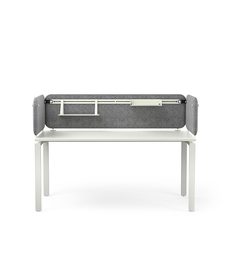 Les panneaux écrans SOLANGE peuvent recevoir des accessoires à suspendre qui permettent d’optimiser la surface de travail sur le bureau. Astucieux, lls peuvent coulisser sur le rail qui les accueillent pour les positionner selon ses besoins.