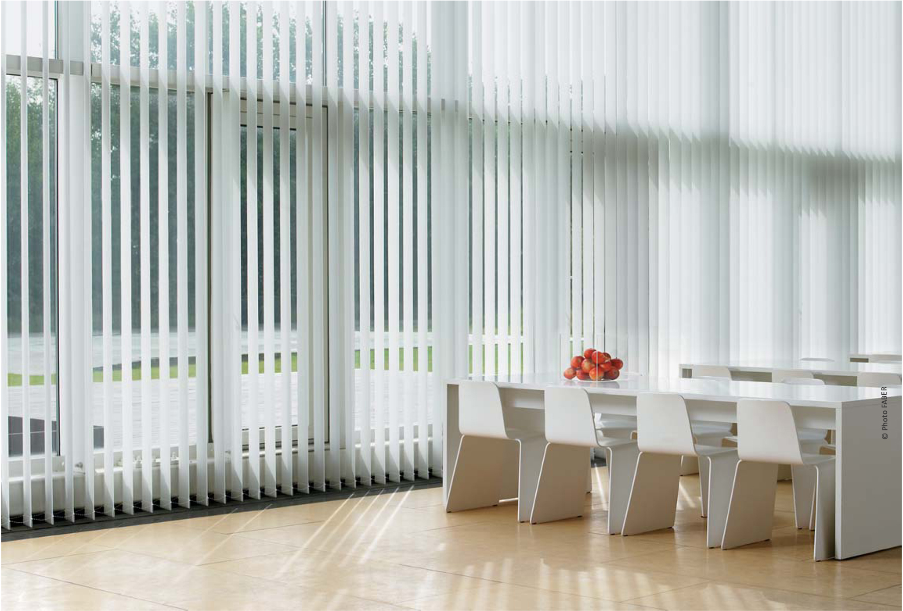 Ils tamisent la lumière avec subtilité ! Les stores à bandes verticales apportent une touche sobre et moderne dans tous les espaces. Installés dans les bureaux, les salles d’attente, salles de réunion ou dans les espaces de collectivités, ils donnent un caractère moderne et épuré et inspirent la quiétude.Conçus avec de larges bandes de tissu variant de 89 à 127 mm, nos stores verticaux à bandes sont proposés dans différents tissus. La collection de tissu déco est déclinée dans une vaste gamme de coloris unis. Des gammes techniques, adaptées au besoin du marché du tertiaire, complètent notre offre et sont certifiés M1 (non feu).Nous vous proposons des stores à bandes verticales en polyester ou fibre de verre, occultants ou non, aux performances techniques et thermiques, des modèles Screen, Soltis®… A l’instar de nos stores vénitiens (lames horizontales), ce sont des produits de qualité.