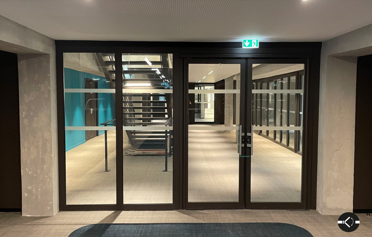 Une porte en profilé rond en acier, vitrée, avec une finition thermolaquée, dont la fabrication répond aux normes européennes en vigueur. Selon vos besoins, de nombreuses finitions sont possibles quant au choix de la quincaillerie, du vitrage ou des fonctionnalités. Cette porte est dès lors adaptée et fonctionnelle pour un grand nombre de secteurs.