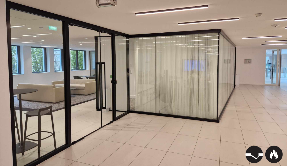 Une porte va et vient en acier, vitrée, pare-flamme avec une finition thermolaquée, dont la fabrication répond aux normes européennes en vigueur. Selon vos besoins, de nombreuses finitions sont possibles quant au choix de la quincaillerie, du vitrage ou des fonctionnalités. Cette porte est dès lors adaptée et fonctionnelle pour un grand nombre de secteurs.
