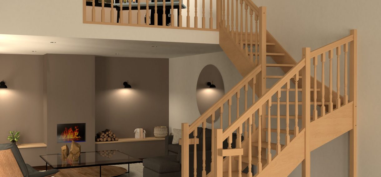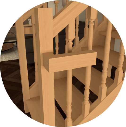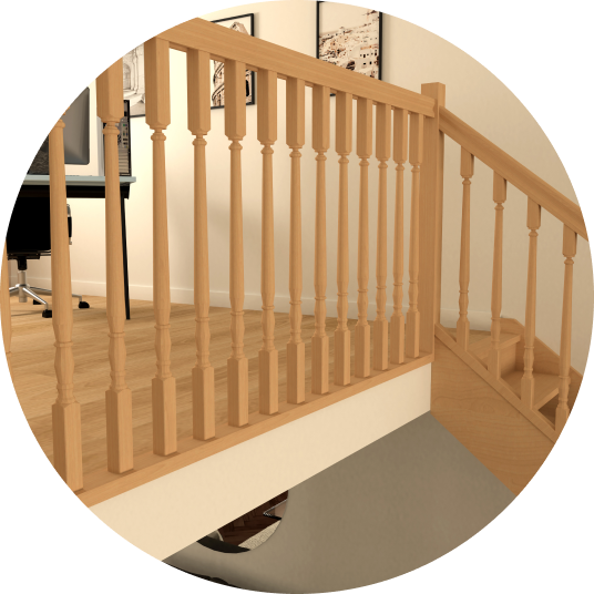 Issu du savoir-faire menuisier traditionnel, AUTHENTIQUE est un escalier 100% bois avec un garde-corps doté de balustres bois tournés au design travaillé.