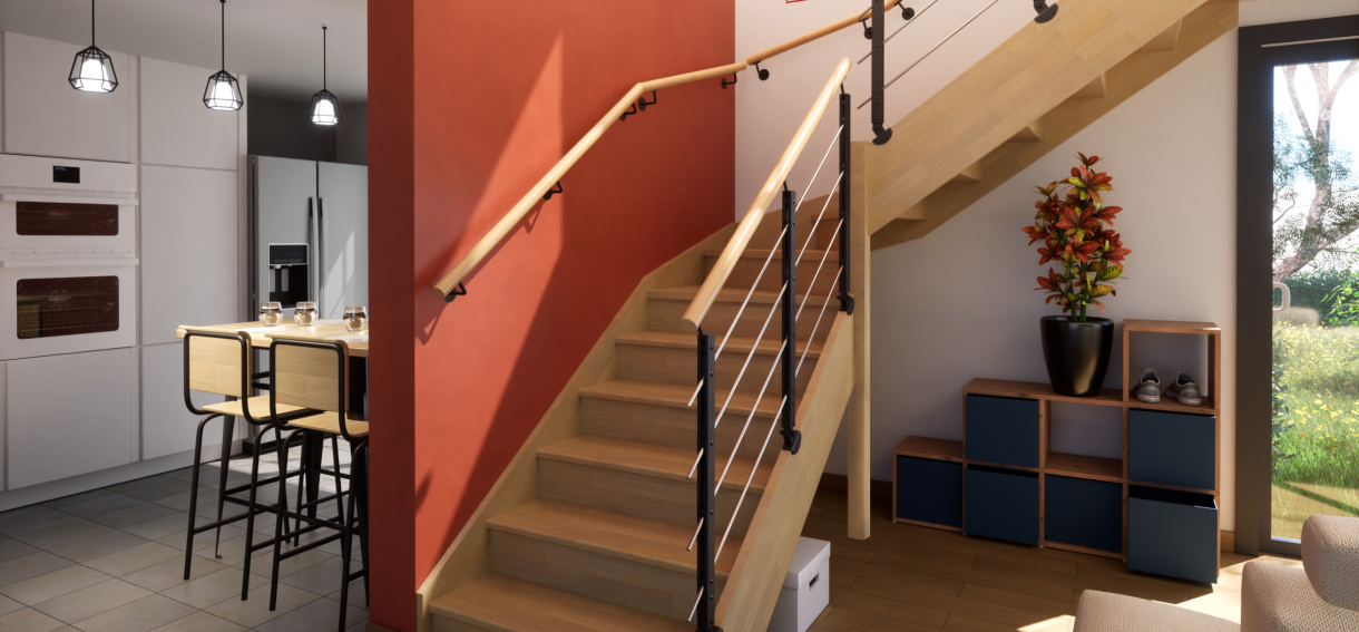 Avec sa main courante tout en rondeur et légèreté associée à des poteaux de garde-corps ajourés, l’escalier EPURE met en avant toute la noblesse et la beauté du bois tout en conférant une grande modernité à l’ensemble.