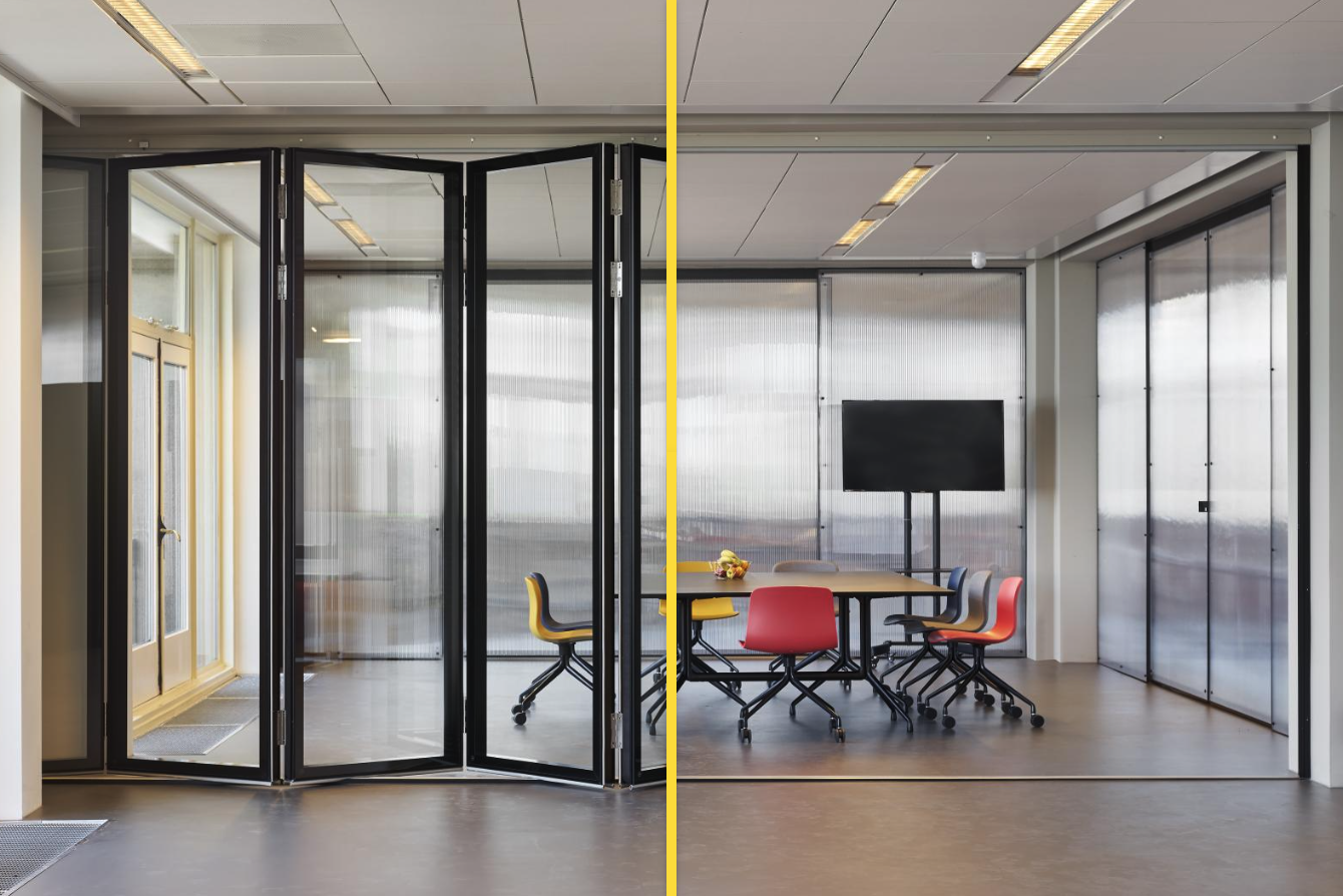 Créez deux espaces en un seul geste, sans que cela nuise à l’impression d’espace ou à la réduction acoustique. Avec la cloison mobile la plus simple d’utilisation de notre gamme, la cloison en verre Lumio.