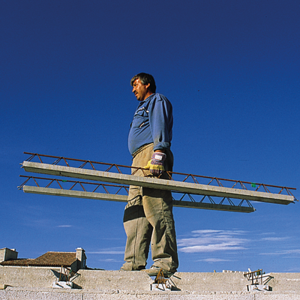 Légèreté et manuportabilité Deux fois plus légère qu’une poutrelle pleine : moins de 90 kg pour 6.00 m de portée contre plus de 175 kg pour une poutrelle pleine. L’acier en partie haute du raidisseur facilite la prise en main.