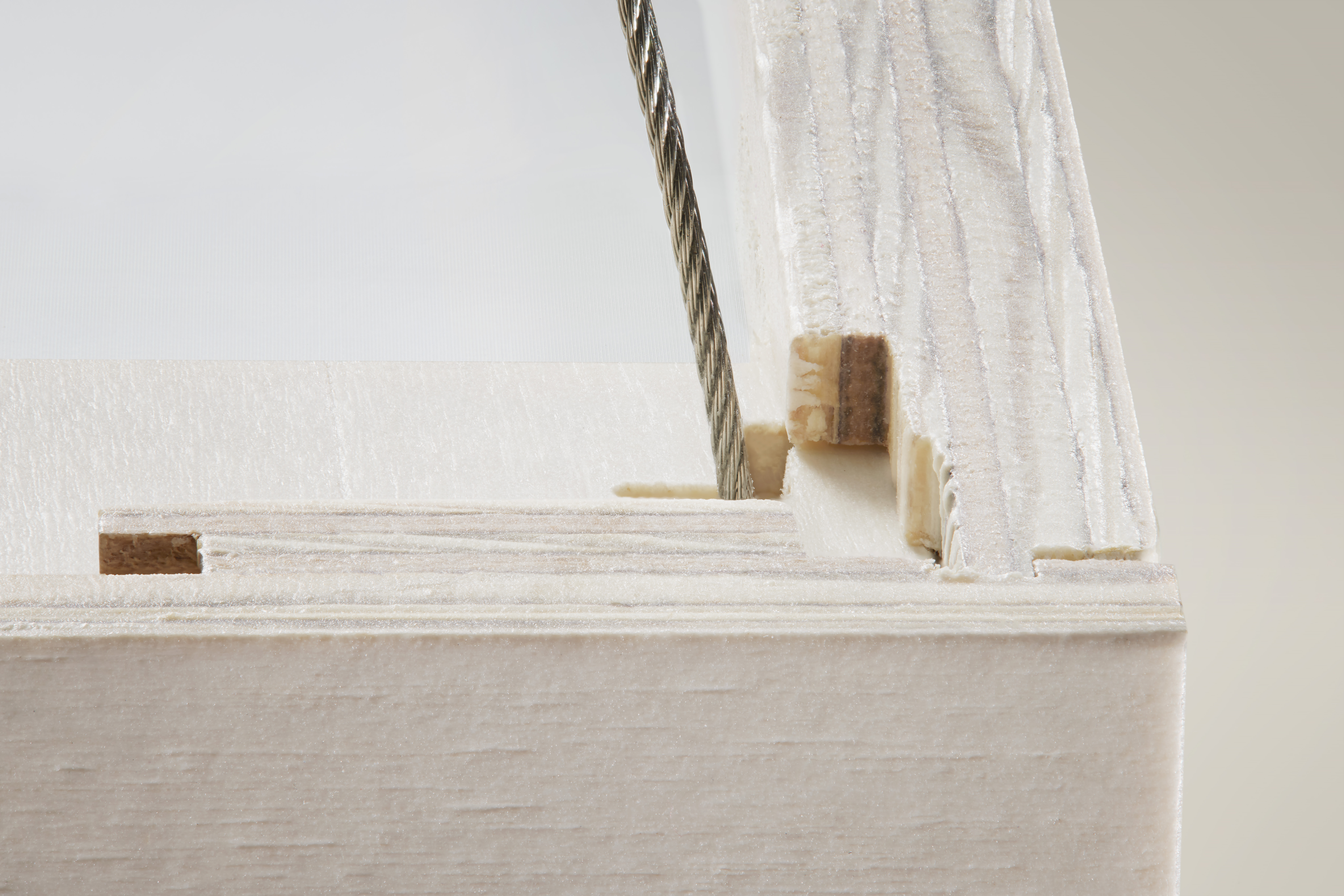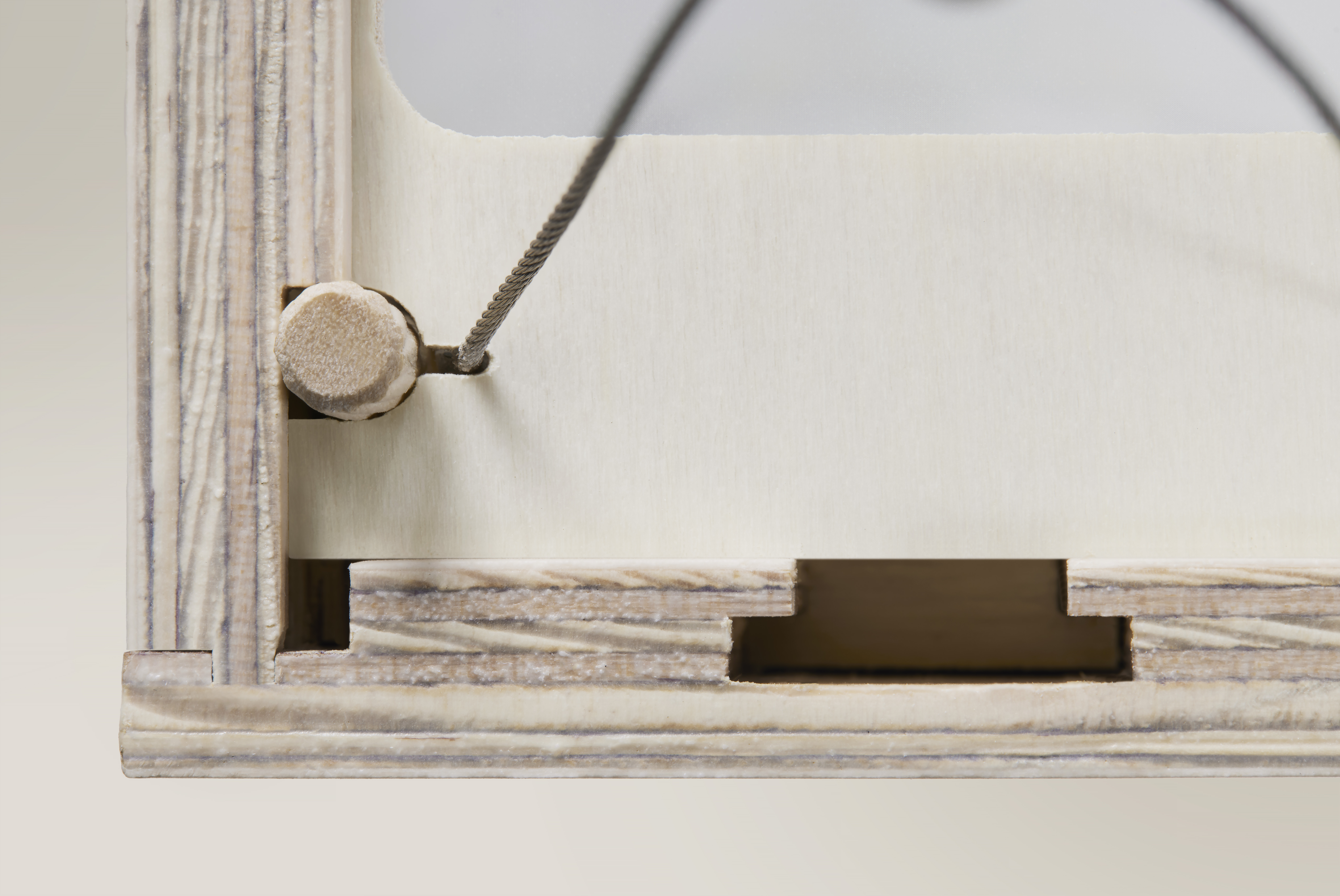 Le corps du luminaire a été assemblé avec un savoir-faire traditionnel, sans vis ni autres fixations. Le résultat est un luminaire à la fois innovant et traditionnel.