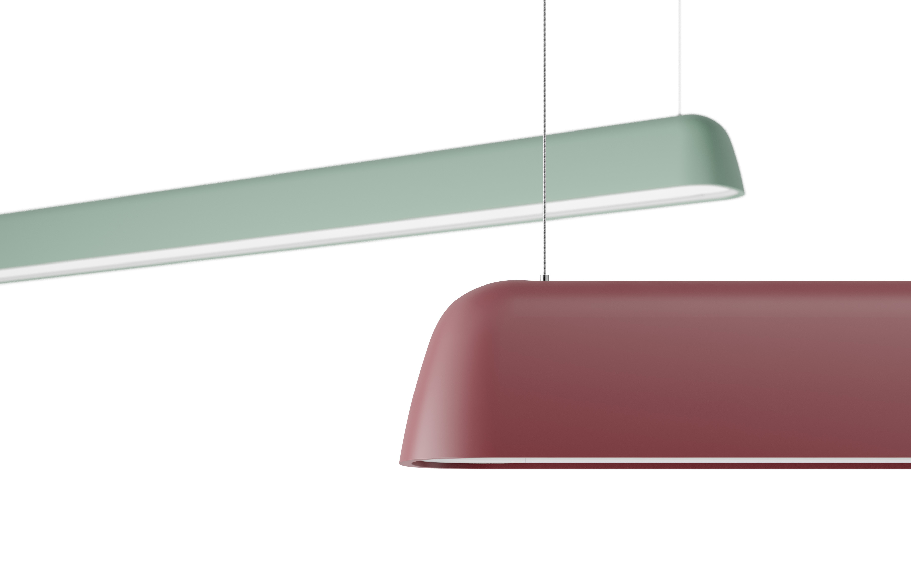 Basé sur un arbe coupé, Sweep propose une forme douce accueillante dans un paysage de bureau ouvert, ou dans un salon isolé, un bureau de travail ou un couloir. Les domaines d’application sont nombreux, et quel que soit le contexte, Sweep fournit une lumière de haute qualité. Avec une répartition de 60 % de lumière directe et de 40 % de lumière indirecte, Sweep est le choix naturel pour l’environnement de bureau, avec une combinaison d’éclairage de travail efficace et une bonne part de lumière indirecte. Dans la version à diffuseur opale, le diffuseur inférieur est concave, ce qui donne l’impression de regarder vers le haut vers un espace vide éclairé. Sweep a une finition mate, caoutchoutée, et existe en standard en blanc, noir, bleu clair, vert clair et corail clair. Pour la lumière directe, Sweep dispose d’un diffuseur opale ou d’une protection anti-éblouissement micro-prismatique Delta. L’éclairage indirect est diffusé par un diffuseur opale dans les deux versions.