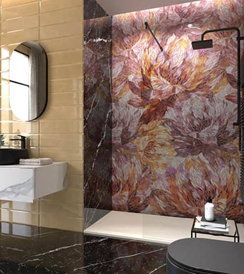 Roma Gold enrichit le catalogue d’effets marbre en s’ajoutant aux séries Roma, Roma Classic et Roma Diamond de FAP, une explosion de marbres qui diffèrent par leurs effets et leurs formats, en poursuivant le filon d’un décorativisme élégant et brillant. Les nouvelles références sont un assortiment de wall tiles et de grès cérame où le fil conducteur est un mix équilibré de classicisme et d’éclectisme.