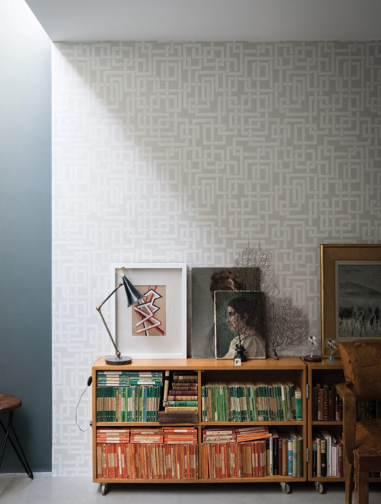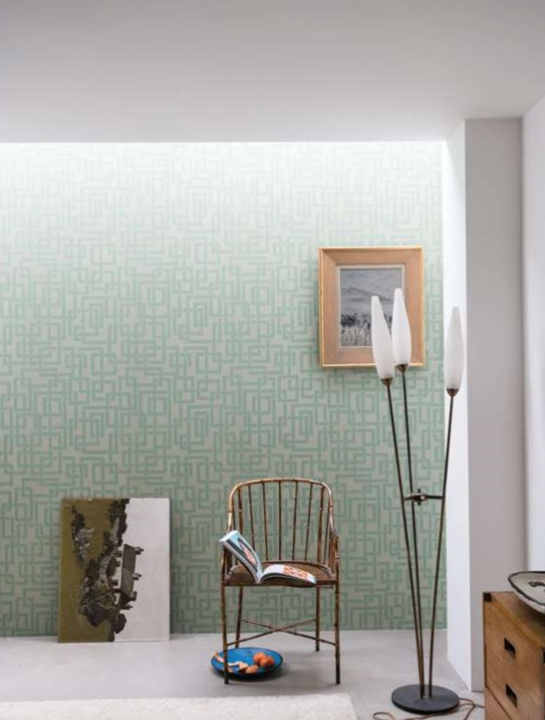 Les rectangles imbriqués de notre papier peint Enigma s’inspirent de la machine de cryptage du même nom, dont les codes furent déchiffrés par Alan Turing durant la Seconde Guerre Mondiale. Hommage à la rigueur mathématique, le papier peint joue sur une rythmique particulièrement esthétique du motif pour sublimer les murs.