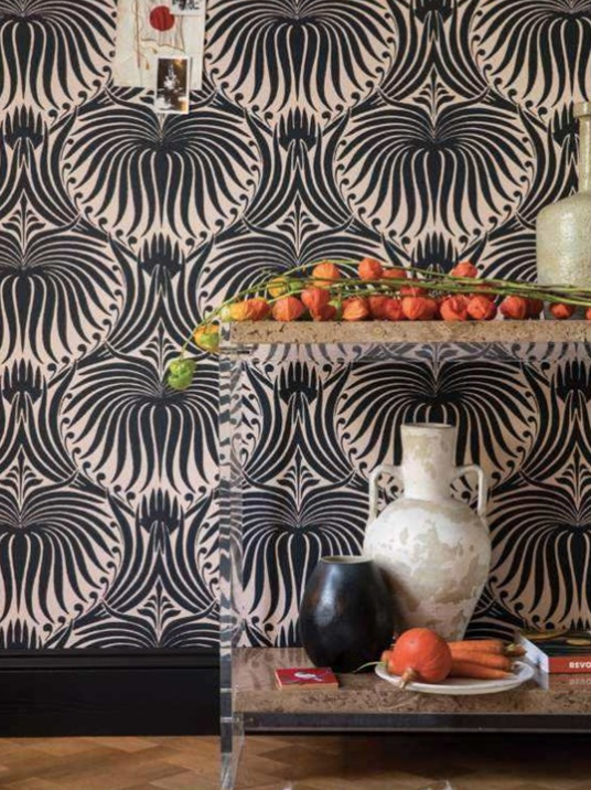 Inspiré de la période Belle Époque, le motif Lotus apporte une touche vintage élégante typique du XIXème siècle dans les maisons traditionnelles comme contemporaines. Les fleurs qui s’épanouissent au mur sont imprimées directement à partir de peinture Farrow & Ball, ce qui donne cet effet texturé au papier et cette dynamique au motif.