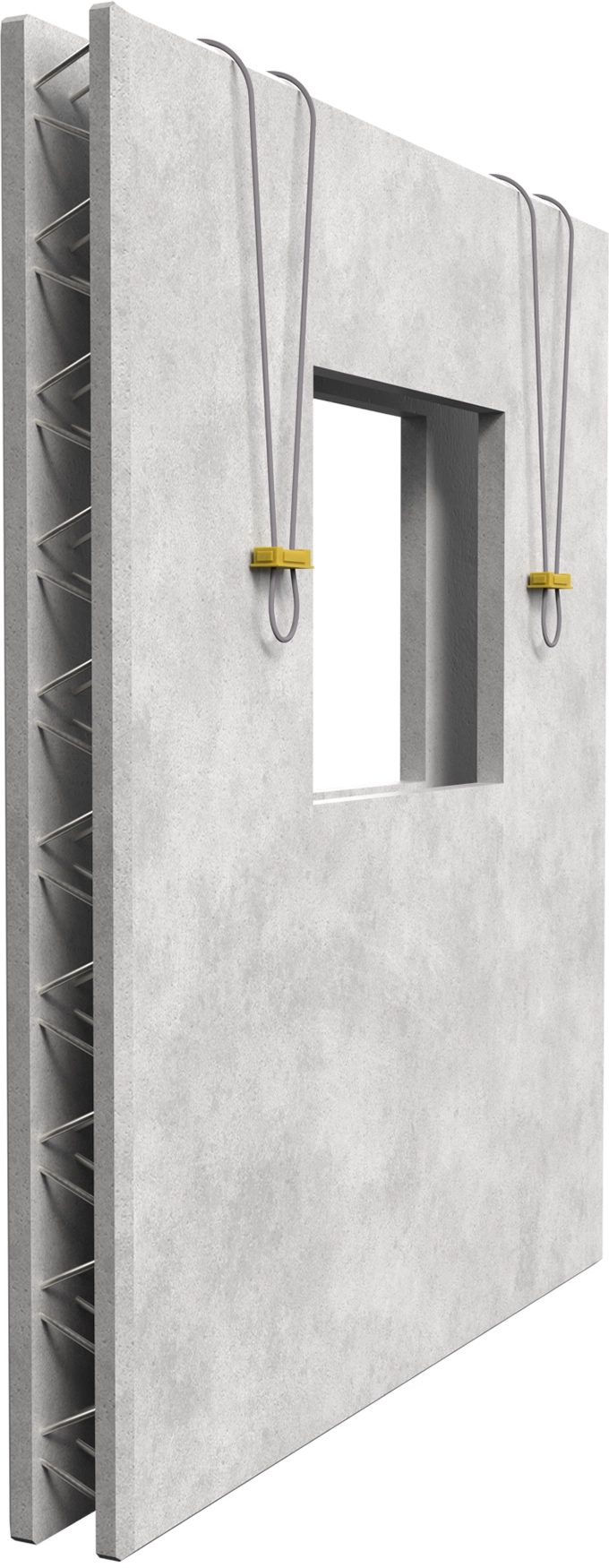 Le Précoffré® Classique, mur à coffrage intégré, est constitué de deux parois minces en béton armé reliées et maintenues espacées par des raidisseurs métalliques et d’un vide central permettant le coulage du béton prêt à l’emploi.